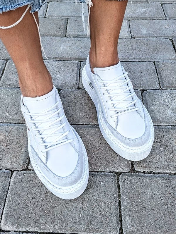 Будьте первым, кто оставил отзыв на «Серо-белые кроссовки на толстой подошве из кожи и замши»