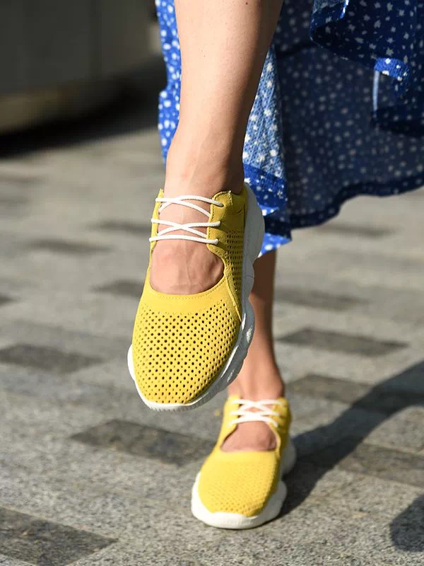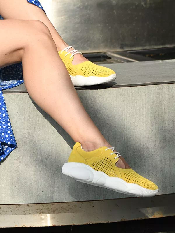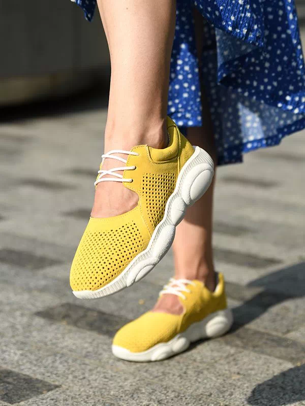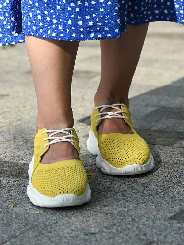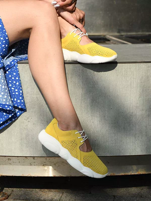 Трендовые летние женские кроссовки в желтом исполнении на все случаи жизни.