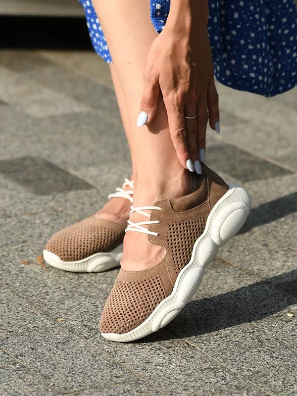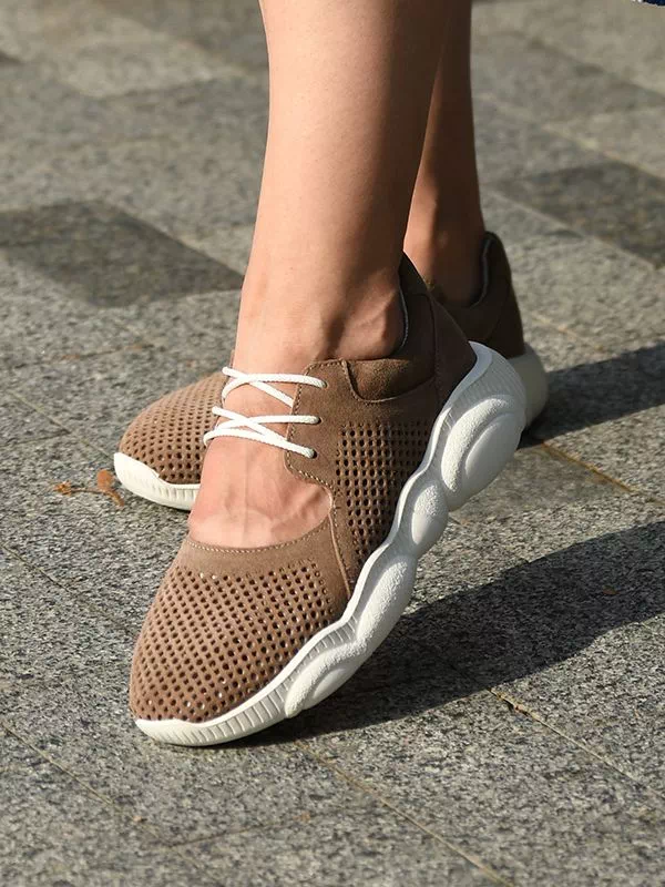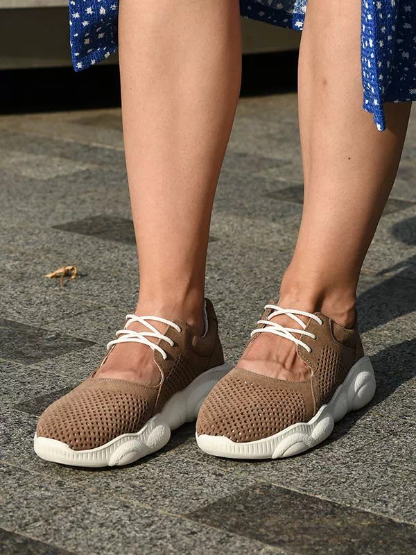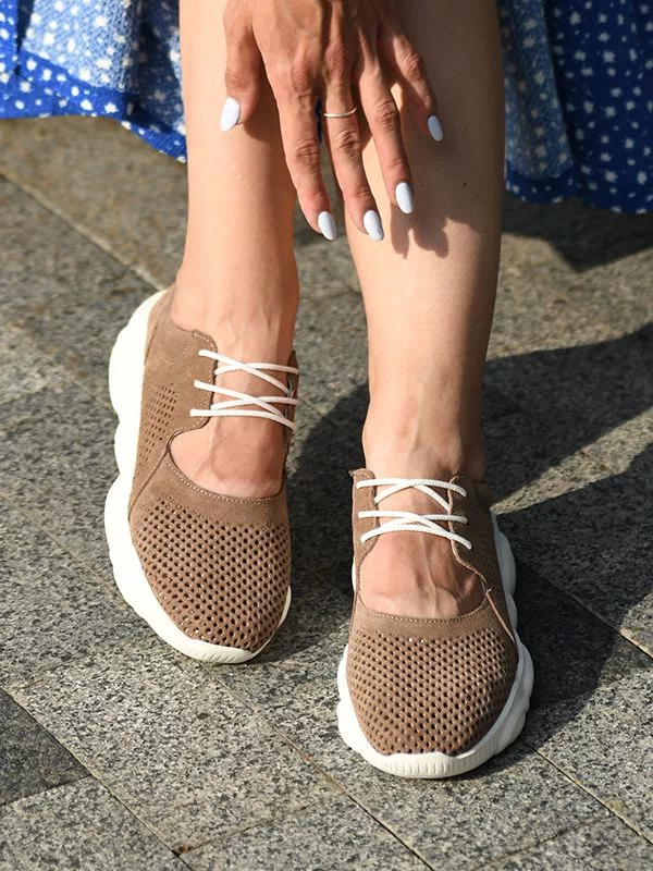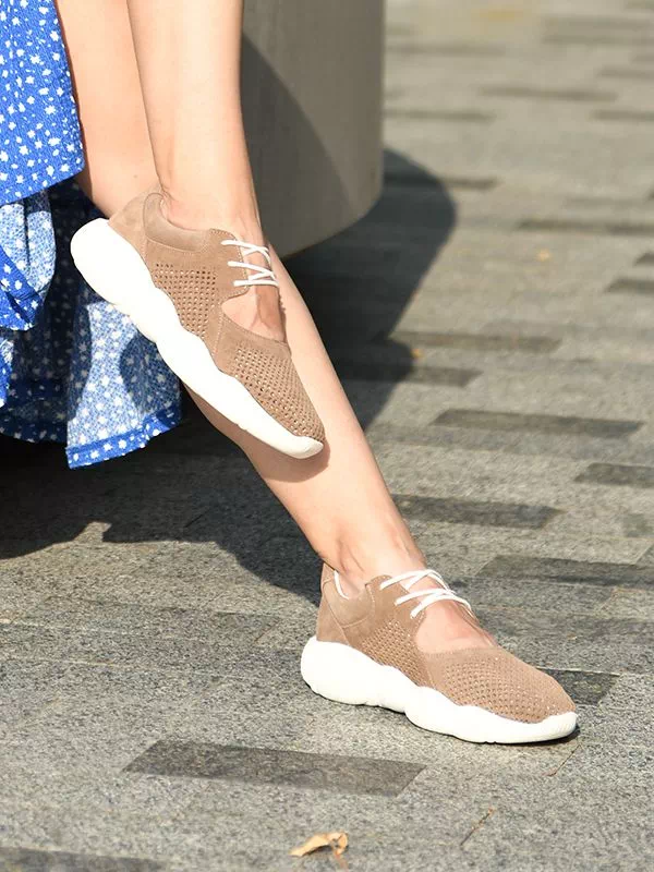 Восхитительные летние женские кроссовки в темно-бежевом исполнении на все случаи жизни.
