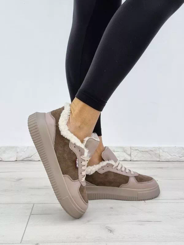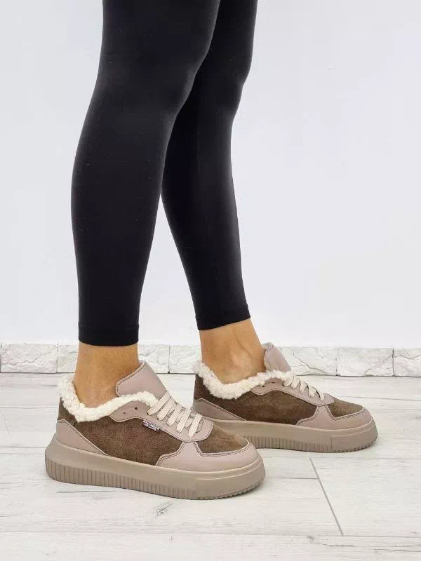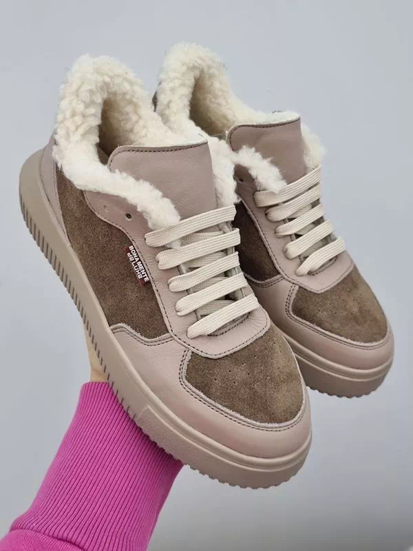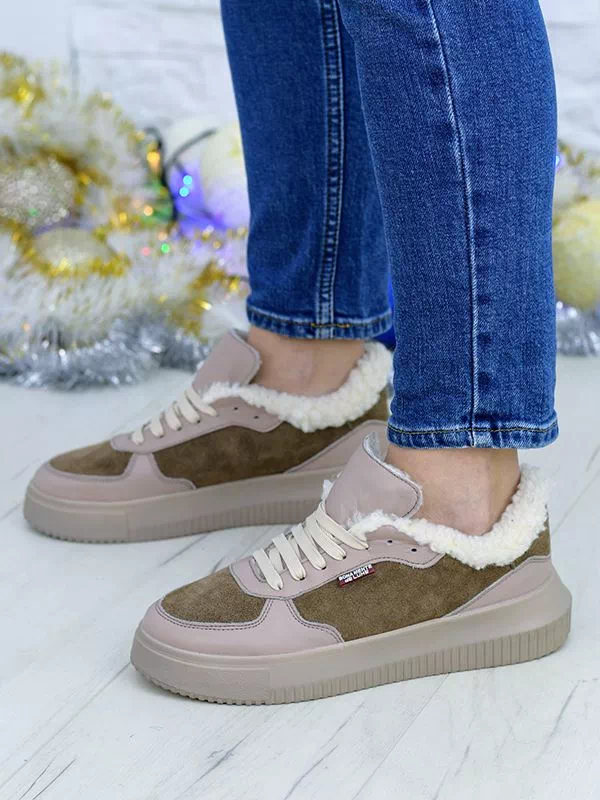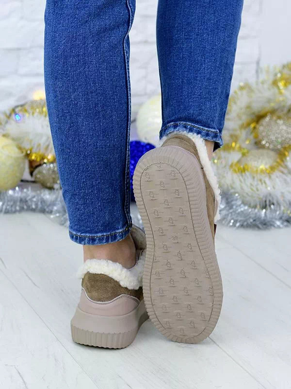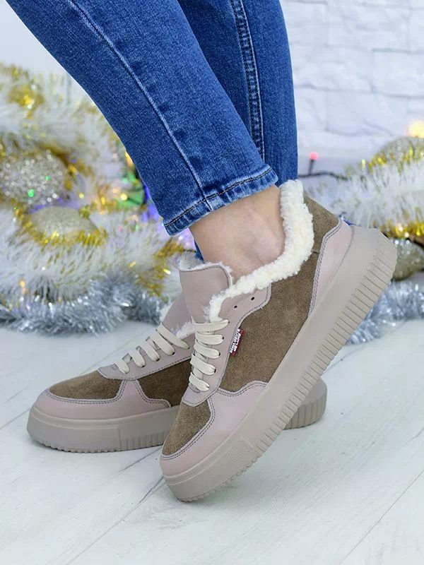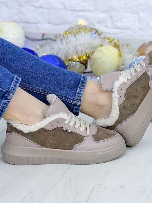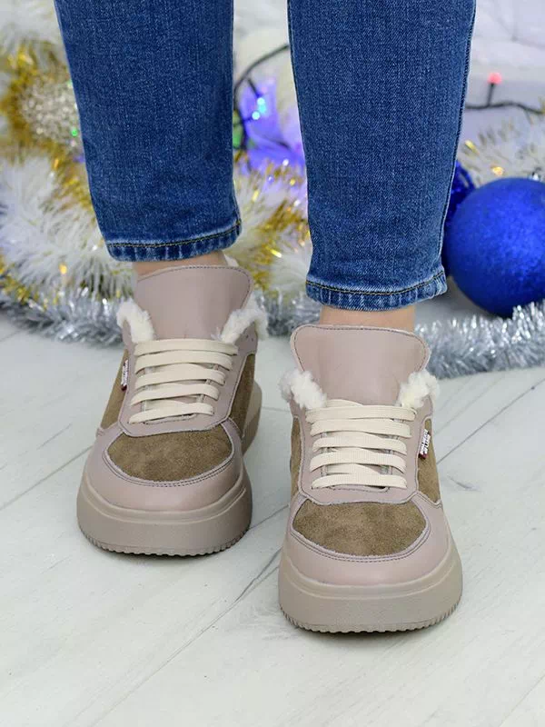 Темно-бежевые зимние кроссовки из натуральной кожи и замши
