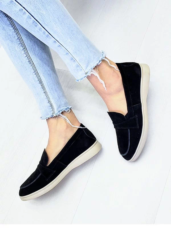 Лоферы в черном исполнении из натуральной замши