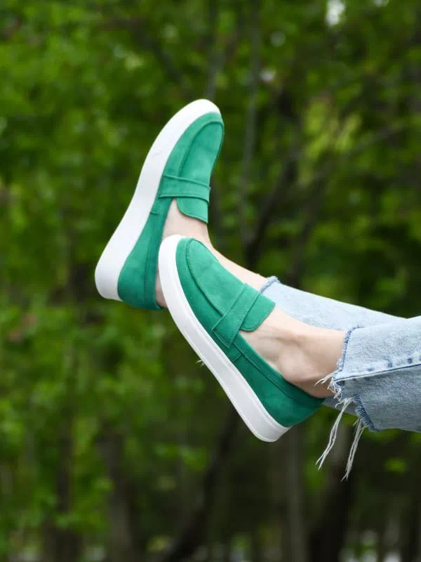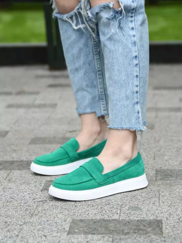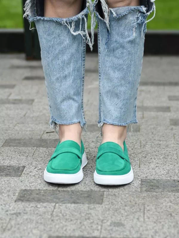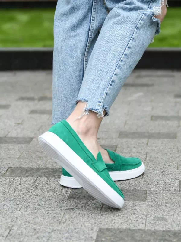 Привлекательные женские лоферы в зеленом исполнении на все случаи жизни.