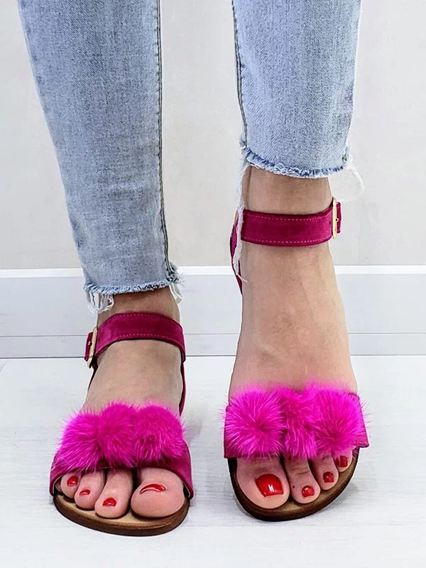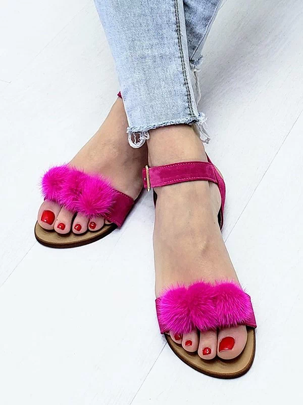 Трендовые низкие женские сандалии малинового цвета на любые случаи жизни.