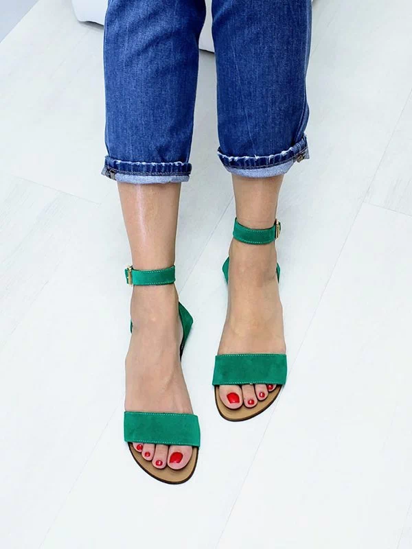 Превосходные низкие женские сандалии зеленого цвета на любые случаи жизни.