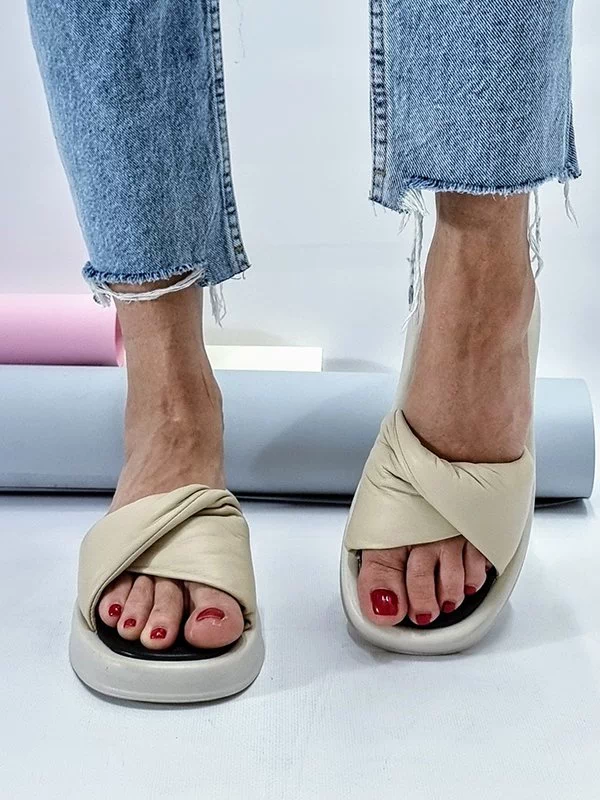 Потрясающие женские шлепанцы светло-бежевого цвета на все случаи жизни.