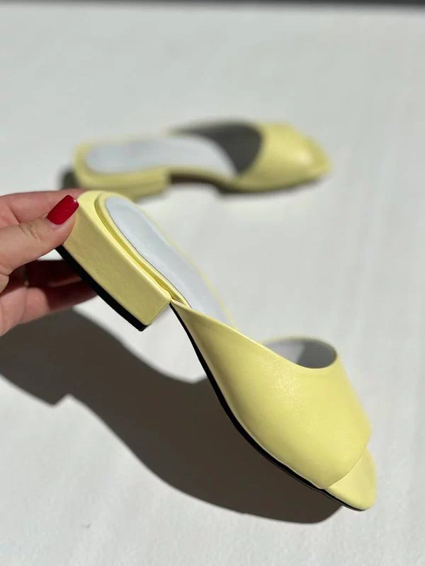 Интересные женские шлепанцы в лимонном исполнении на все случаи жизни.