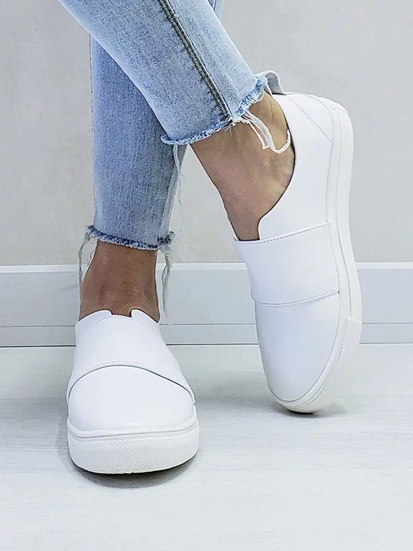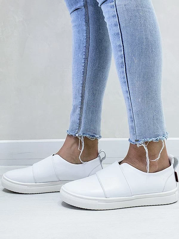 Интересные женские слипоны в белом исполнении на все случаи жизни.