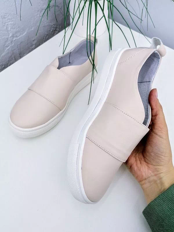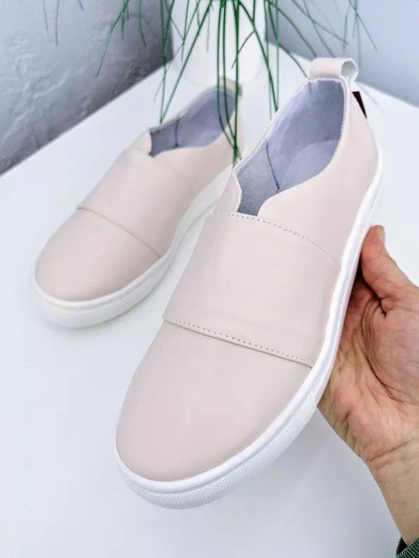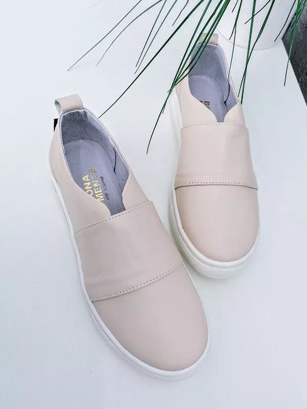 Светло-бежевые слипоны из натуральной кожи