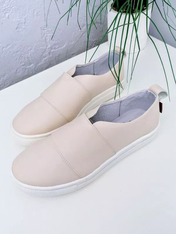 Интересные женские слипоны светло-бежевого цвета на любые случаи жизни.