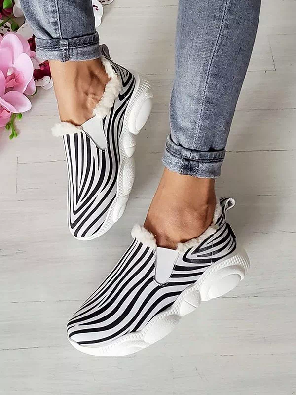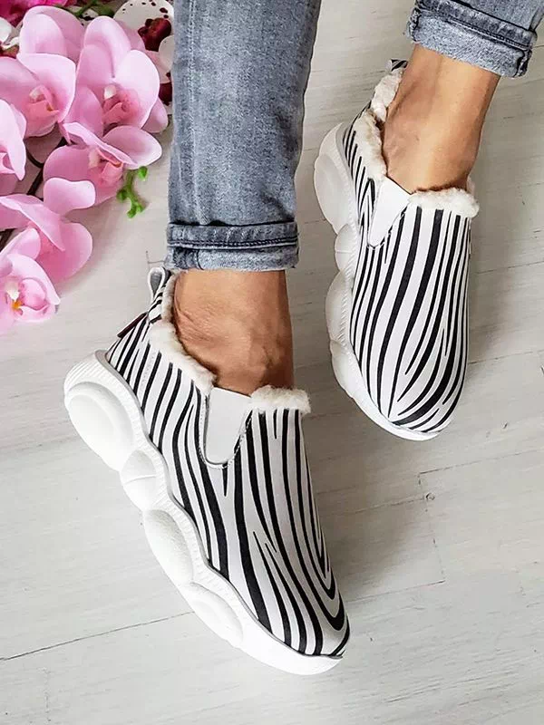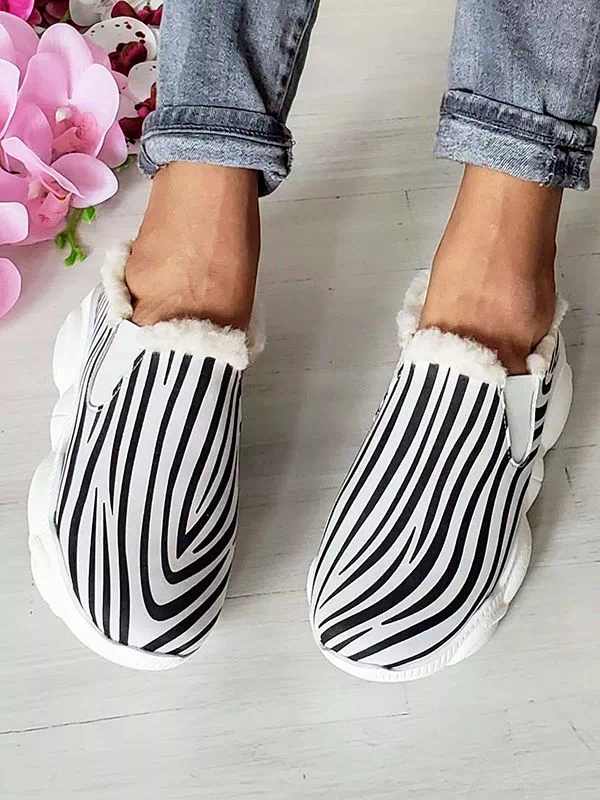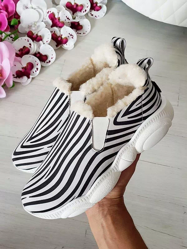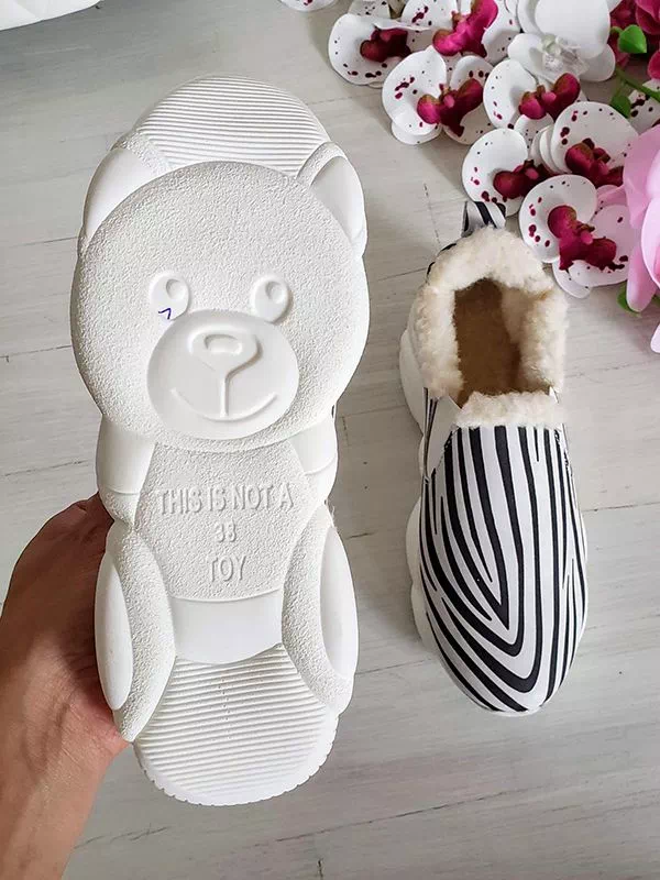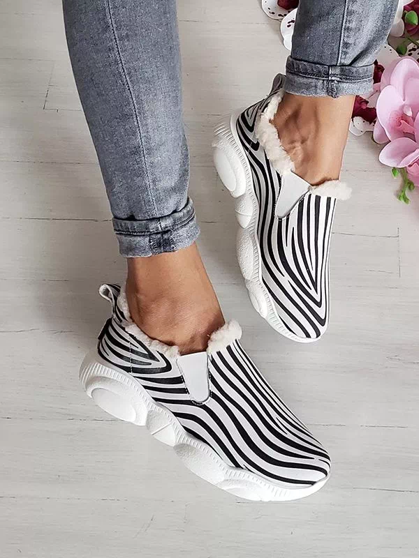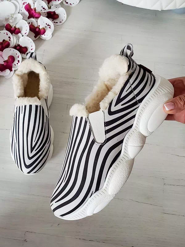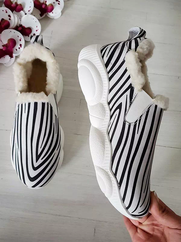 Нубуковые черно-белые зимние слипоны с принтом «под зебру»
