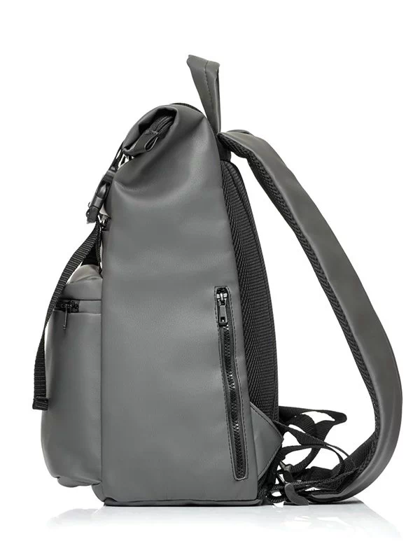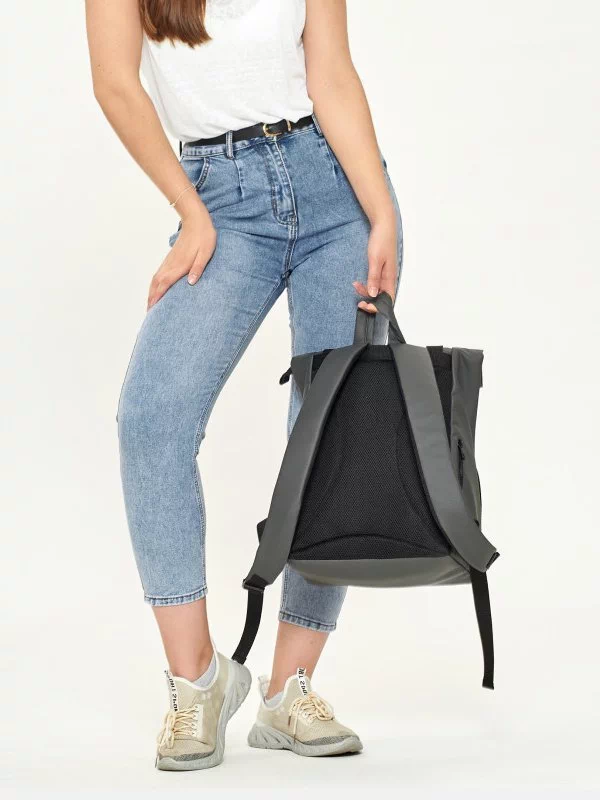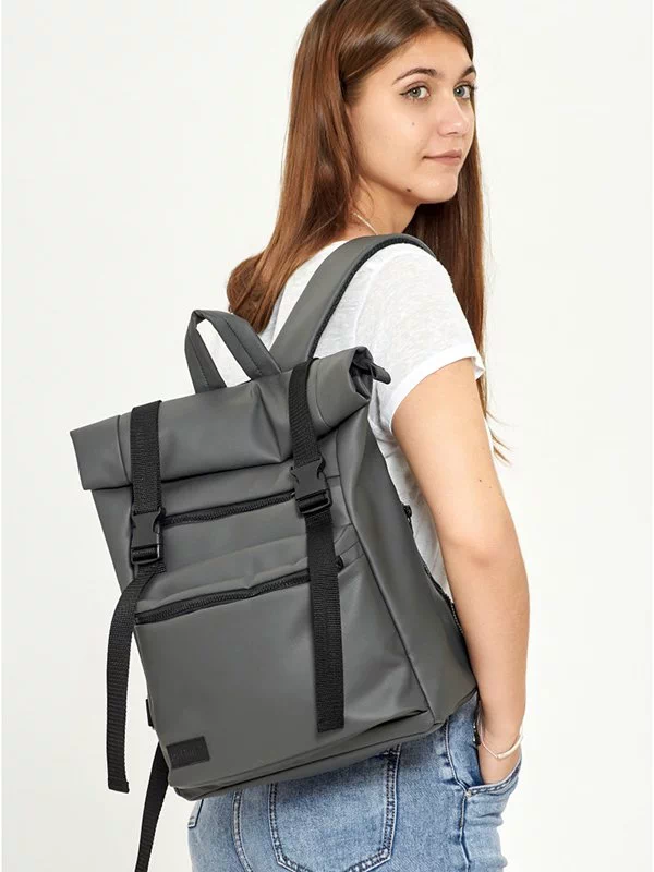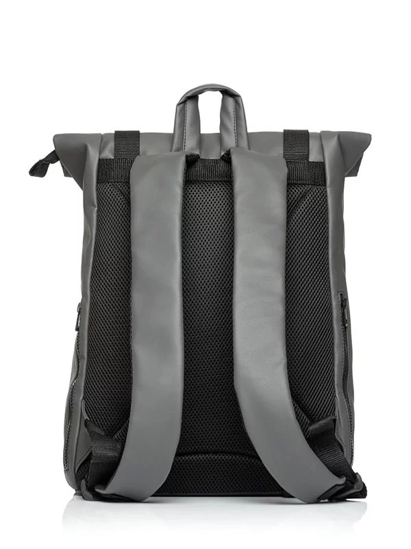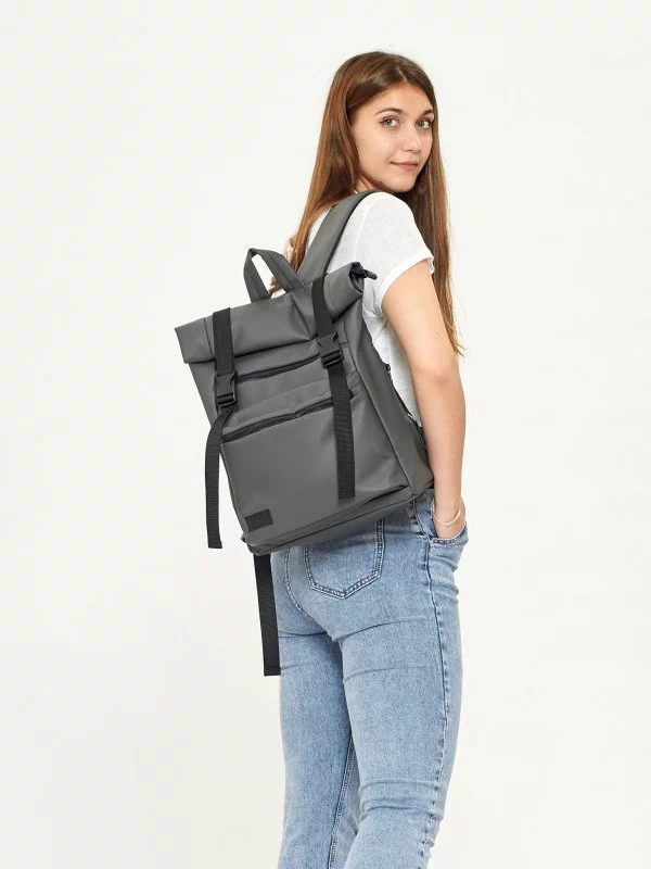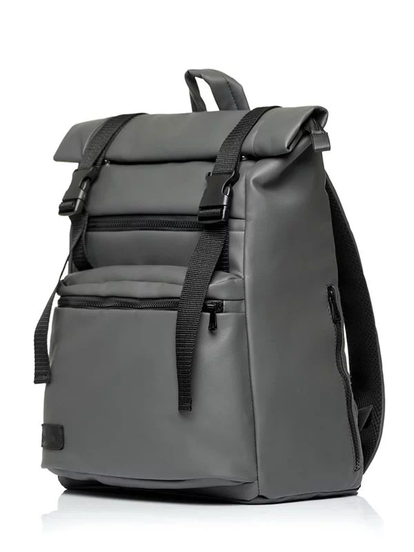Вместительный рюкзак-ролл чёрного цвета (с клапаном) из эко-кожи
