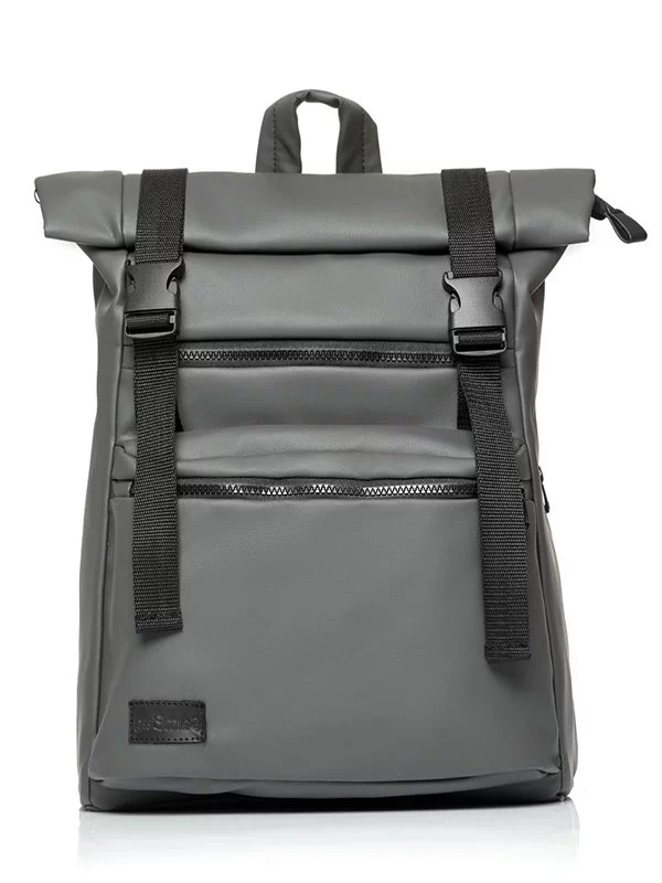 Вместительный рюкзак-ролл тёмно-коричневого цвета из эко-кожи