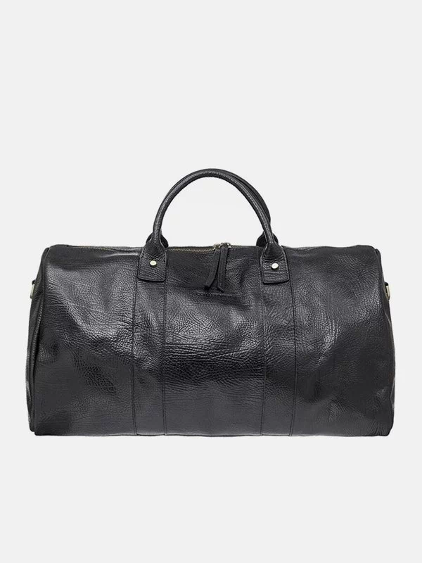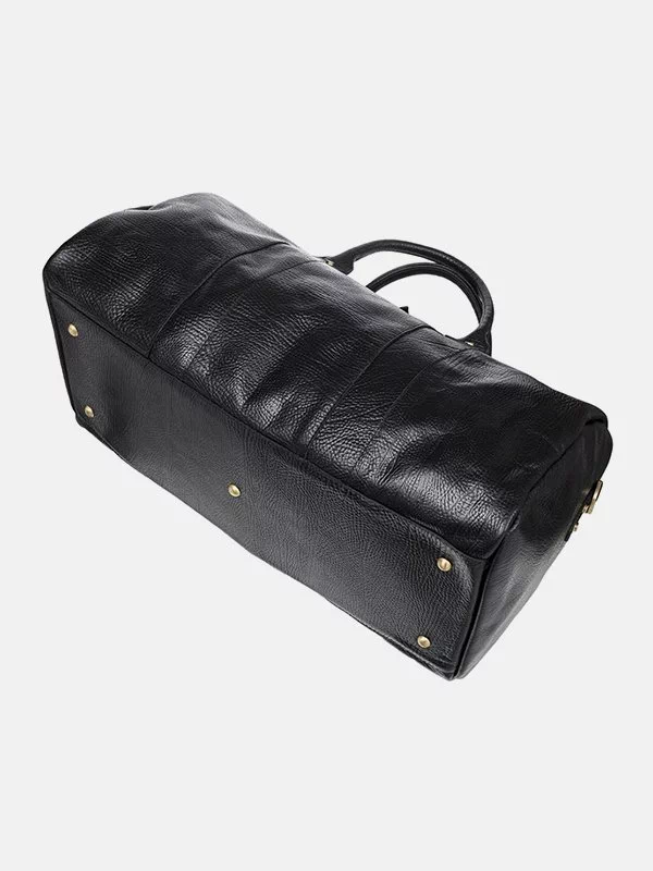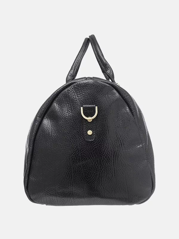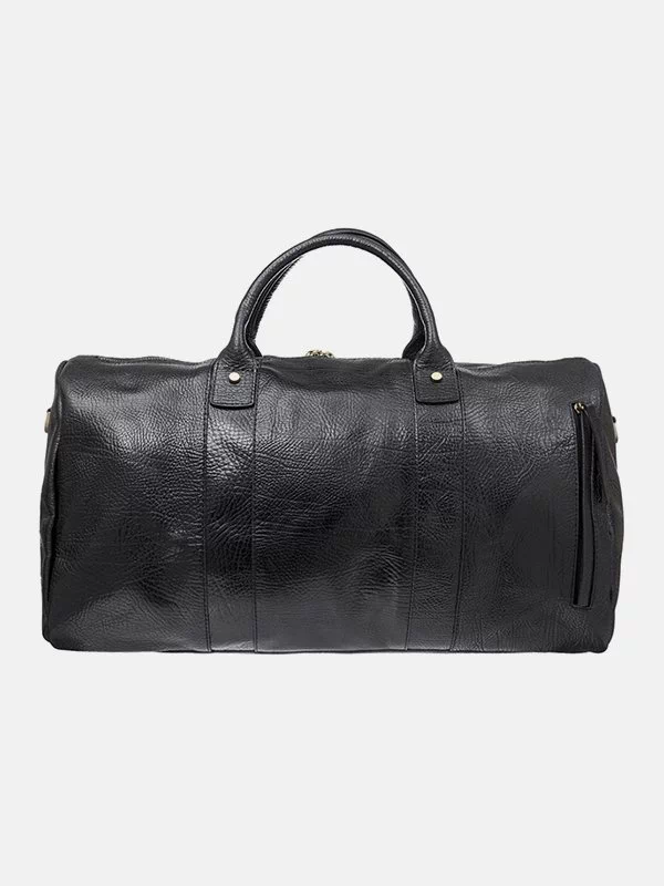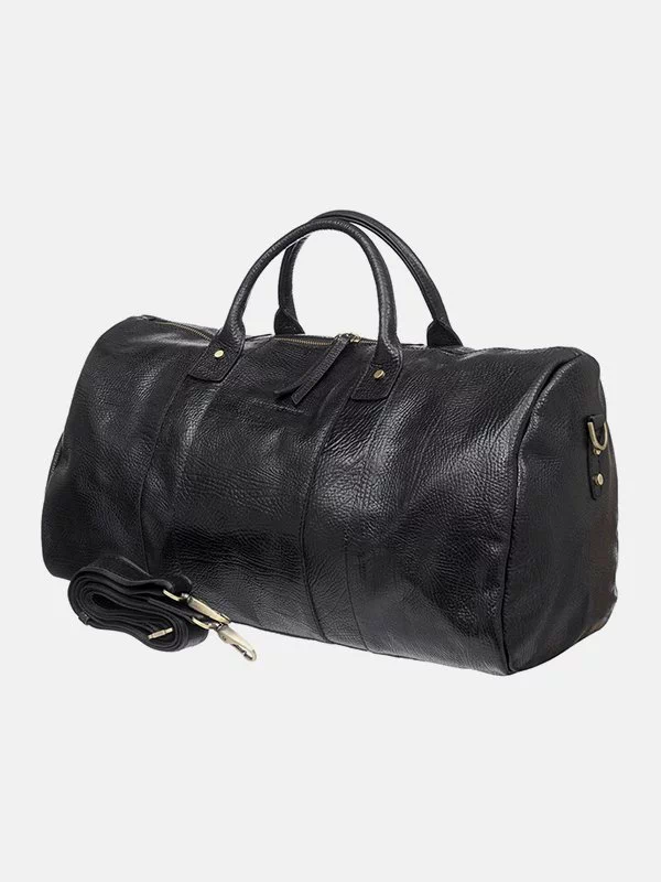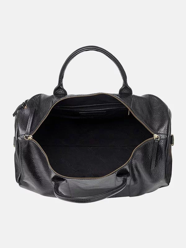 Дорожная сумка чёрного цвета из гладкой натуральной кожи