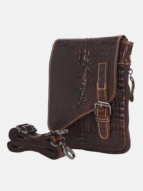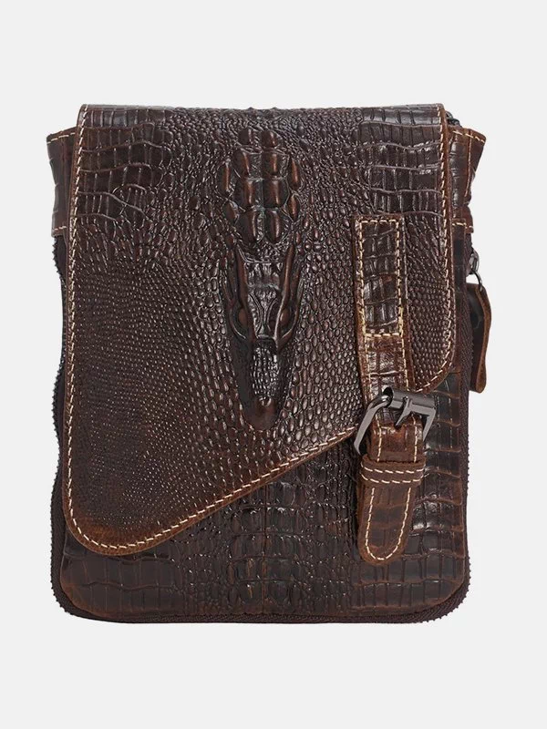 Мужская сумка через плечо BB-800K – удачный вариант для денег, различных мелочей (ключей, павербанков, наушников, смартфонов, зарядных устройств и т.п.). Изготовлена из фактурной натуральной кожи «под крокодила» в коричневом исполнении. Сумка неприхотлива в уходе, имеет аккуратный внешний вид, качественный пошив. Мессенджер пользуется большим спросом на украинском рынке, особенно у молодежи. Незаменимый и удобный аксессуар для ежедневного использования. Страна производитель бренда – Китай.