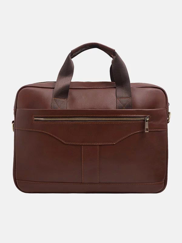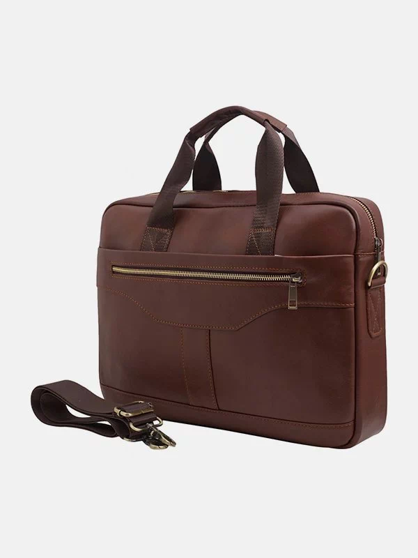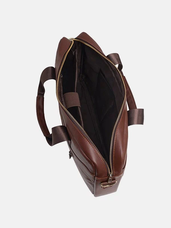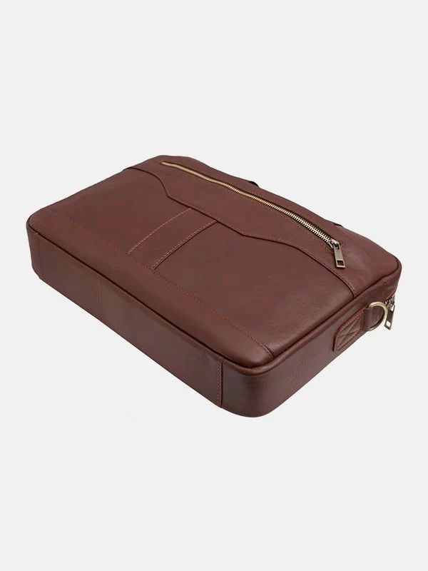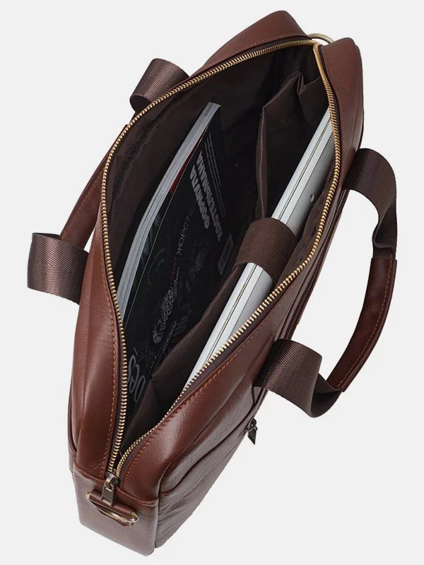 Сумка для ноутбука из коричневой гладкой натуральной кожи