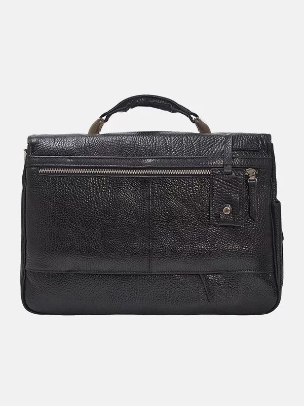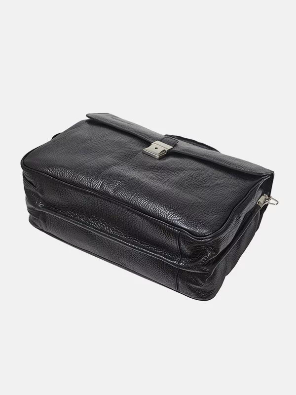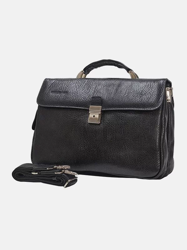 Чёрный кожаный деловой портфель для документов и ноутбука