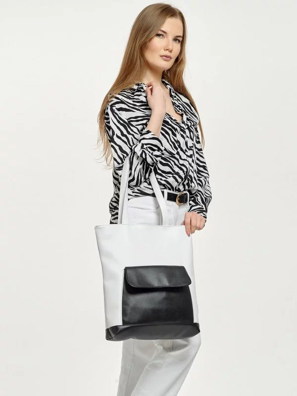 Превосходная женская сумка-шоппер в чёрно-белом исполнении на все случаи жизни.