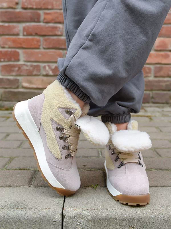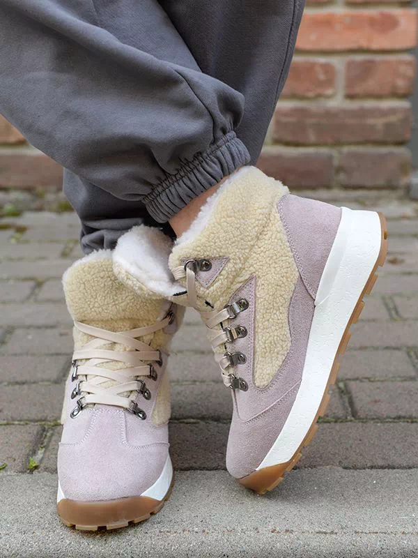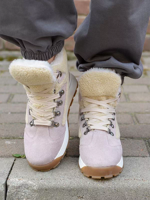 Очаровательные зимние женские ботинки бежево-пудрового оттенка на любые случаи жизни.