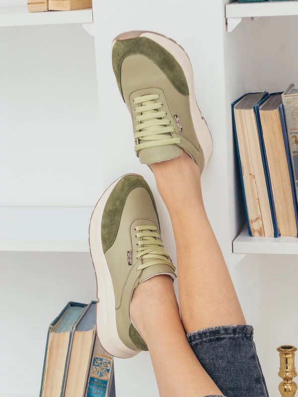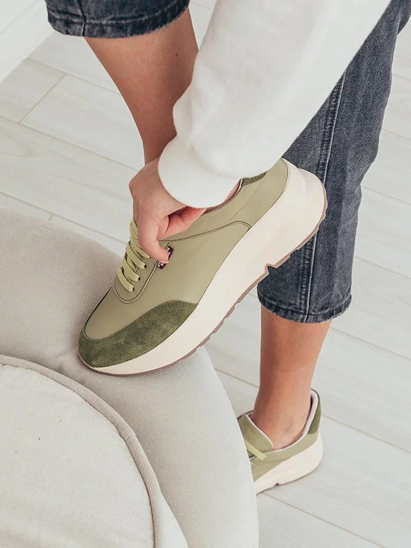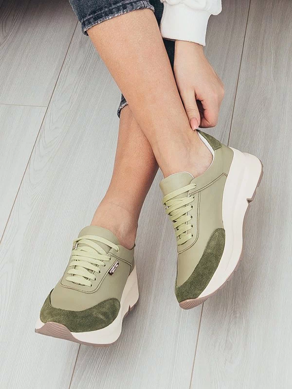 Привлекательные женские кроссовки оттенка «авокадо» на любые случаи жизни.