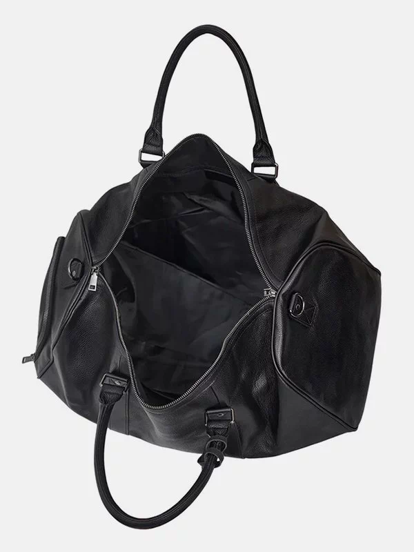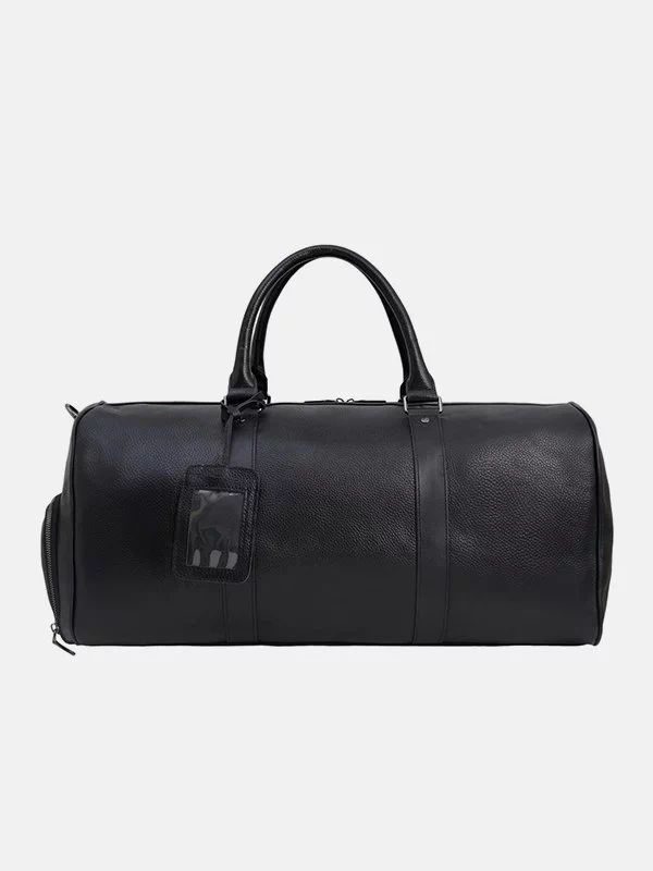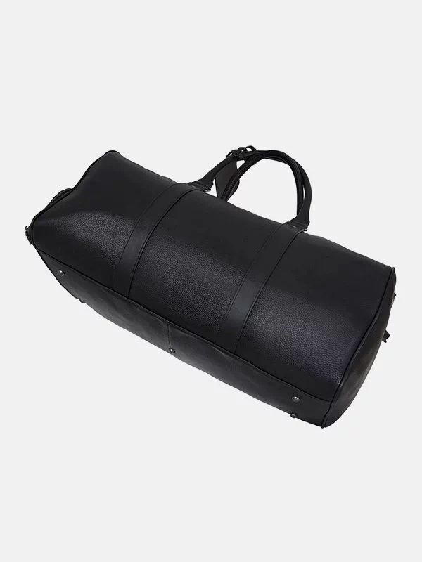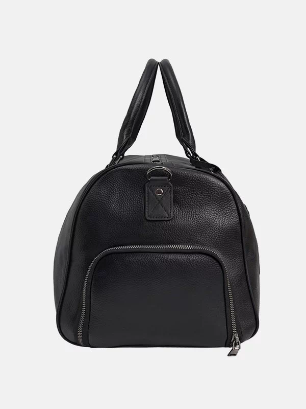 Чёрная дорожная сумка из фактурной натуральной кожи