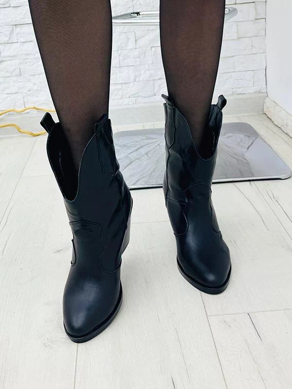 Осінні ботильйони-казаки з чорної натуральної шкіри на байці