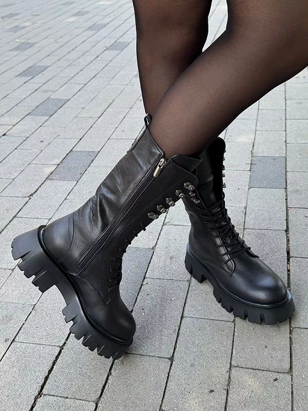 Будьте першим, хто залишив відгук “Чорні високі осінні шкіряні черевики на байці”“